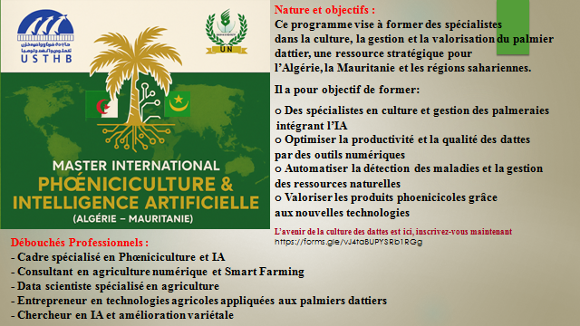 La période d’inscription pour le Master Phoeniciculture est prolongée jusqu’à jeudi 25 septembre 2025.